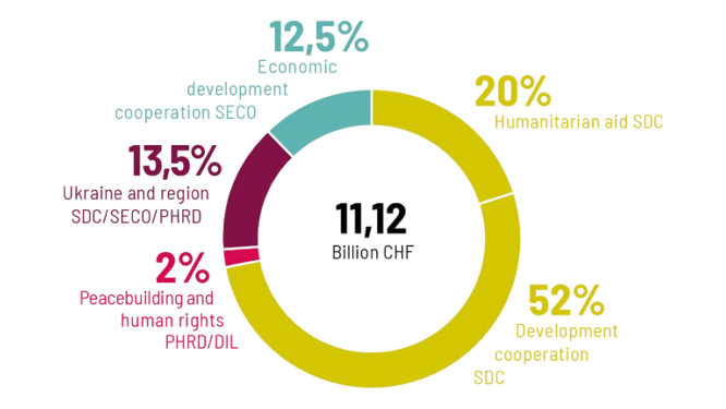 Parliament has set a maximum financial framework of CHF 11.12 billion for the International Cooperation Strategy 2025-2028 with five commitment appropriations. CHF 1.5 billion is earmarked for supporting Ukraine and CHF 1.6 billion for combating climate change. The actual budget is approved annually by Parliament. Parliament has made CHF 2.4 billion available for 2025.